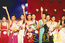 在賽前彩排中﹐選手們身穿旗袍裝通過紅色宮門,向世人演繹中國女性的美麗風韻。 (中新社)