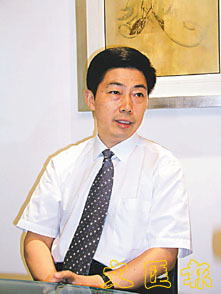 黃石市市長蕭旭明對初步招商成績感滿意。 (孔慧敏 攝)