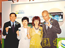 渣打昨宣布推出全港首張迷你信用卡。左起為王冬勝、Manhattan信用卡及私人貸款業務地區總監簡吳秋玉、影星陳慧珊及陳豪合攝。 (黃幗兒 攝)