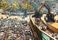 廣州警方昨日銷毀逾千部用以作案的電單車。 (路透社)