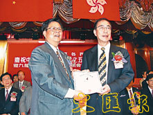 周俊明副主任(左)頒發證書予楊孫西會長。 (鄭群 攝)