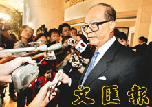 長實集團主席李嘉誠在北京說,建免稅加工區的河套區因地權不明朗,需要中央支持才能成事,所以他才在北京提這件事。 (本報北京傳真)