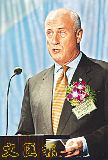 美國駐台協會台北辦事處處長包道格強調,陳水扁應該信守就職演講中的「四不」承諾。(法新社)