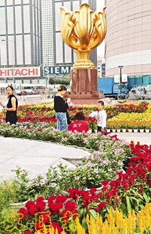金紫荊廣場鮮花盆景迎國慶。