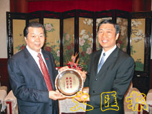 本報社長張國良(左)向李源潮書記贈送禮品。