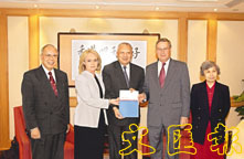 SARS專家委員會聯合主席錢卓樂爵士(右二)及葛菲雪教授(左二)昨日向董建華交報告。