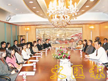 林樹哲等南益高層向加入集團的二十名大學生介紹公司經營理念。 (鄭群 攝)