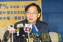 馮孝忠稱,資金大量湧入令銀行「水浸」。