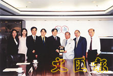 香港中華廠商聯合會常務會董冼漢鑌(右三)代表致送紀念品予上海嘉定區副區長莊木弟(左五)。廠商會其他出席代表包括會董曹金霖(右二)及曾金城(右一)。