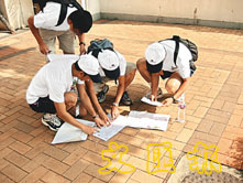 公開組的參賽者接過地圖後,立即蹲地閱讀指示,希望盡快到達沙田區各找尋點。