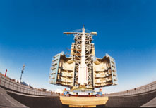 神州五號箭船合體垂直轉運至發射區。