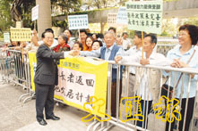 市民到立會支持民建聯的陳鑑林提出「長者返回內地定居」議案。