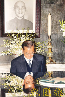 國民黨主席連戰前往慈湖,向蔣介石陵寢致敬。(中央社)