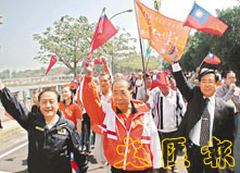 泛藍25日在金門舉行捍衛「中華民國」大遊行,國親新三黨五百多人參加,展現泛藍團結打贏選戰的旺盛決心。 (中央社)