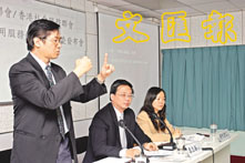 蔡偉雄(左)以手語講解如何讓聽障人士使用公共服務時更方便。 (李少文攝)