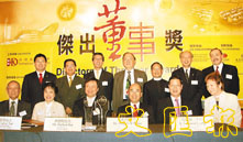 【本報訊】(記者 張萍)備受香港各界重視的「2003年度傑出董事獎」各組別獎項得主日前揭曉。主辦機構香港董事學會今年成功甄選出七個組別的十個獲獎董事及董事會。王冬勝、范尚德、鄔維庸等以其超卓佳績折桂,可謂實至名歸。頒獎典禮在萬豪大酒店隆重舉行,財經事務及庫務局局長馬時亨主禮頒獎。