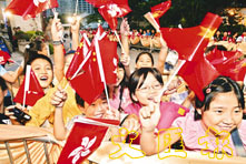 小朋友熱烈歡迎楊利偉到來。 (劉國權 攝)