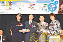 影視及娛樂事務管理處總行政主任唐富強(左二)及楊超成主席致送紀念品予推廣大使Boy'z。