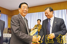 四川省委書記張學忠訪問本報,與本報社長張國良老友相逢。 (李志樑攝)