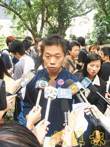 教院署理學生會會長何天佑介紹會面情況。 (任智鵬 攝)