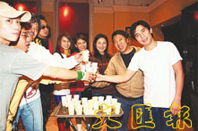 【本報訊】(記者 梁靜儀)馬偉豪執導的《地下鐵》前晚終於煞科,男女主角梁朝偉、楊千嬅、客串演出的2R及工作人員更在現場開香檳慶祝。馬偉豪表示電影主題曲已決定由楊千嬅與梁朝偉合唱。