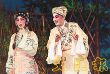 與舞台拍檔吳美英演出《再世紅梅記》。