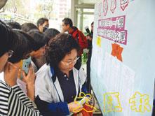 心情緊張的家長爭看小一自行收生派位結果。 (李國標攝)