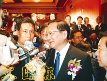 在賓主祝酒時,第一個快步上來向國務委員唐家璇敬酒的是香港交易所主席李業廣。唐家璇回敬時,向李主席連道兩聲「恭喜」。緊接著,唐家璇親自走向香港各位代表面前,一一敬酒,共表慶賀。