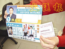 【本報訊】(記者 明 言)「民主派」立法會議員陳偉業被指涉嫌「知法犯法」:有讀者向本報投訴,指陳在其盟友荃灣綠楊選區候選人陳啟明以公帑寄出的宣傳單張中,夾附一封「致荃灣居民書」的單張,有違反選舉指引規定,濫用政府免費投寄服務資源,偷步宣傳及發表虛假聲明之嫌。選舉事務處已正式接受投訴,並會進行深入的調查。