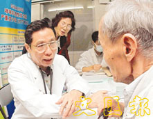 著名呼吸疾病專家、中國工程院院士鍾南山教授在義診活動中心為市民義診。 (新華社)