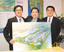 (左起)陳奕仁、劉興達、盧迪生介紹北京奧林匹克水上公園的設計概念。 (甄健輝 攝)
