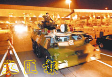 據《明報》昨天報道,「當車隊途至大欖隧道時,一度疑因欠交440元隧道費而受阻延」,文中引述記者「現場所見」,指其間有交通警員透過通訊器聯絡軍隊負責人,查問是否已完成繳費,「有人」答道:「未,我們尚欠隧道費440元!」經一段時間,車隊才繼續前行,直駛皇崗口岸。