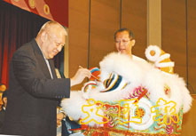 董建華出席香港醫學院十周年慶典,主持醒獅點睛儀式。