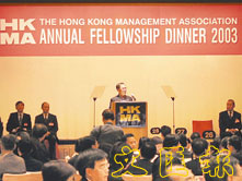 【本報訊】(記者 葉薇)香港管理專業協會日前假洲際酒店舉行周年晚宴。會上,管協頒發會士及特級會員銜予22位傑出人士及機構。政務司司長曾蔭權出席擔任主禮嘉賓,並向600多位嘉賓發表以《Good Corporate Governance: Good Business》為題的演說。