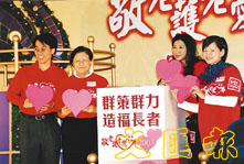 四位主禮嘉賓一同以愛心支持「敬老護老愛心券2003」活動。