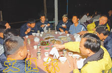 勇士們多日來首次同桌共膳,顯得特別開胃。一同舉杯,飲了十多罐啤酒。譚老闆一家抓住機會,與「捉鱷十勇士」拍照留念,索取簽名。