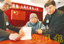 ▲在海淀區北京大學投票站,學生和教工選民積極投票,不少年事已高的教師不顧天冷路滑,準時到投票站投下自己莊嚴的一票。
