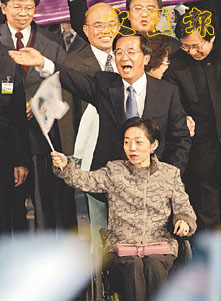 陳水扁夫婦同台拉票。 (法新社)