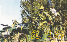 「戰鬥」還在殘酷地進行。突然,攜載我突擊隊員的傘兵突擊車被「敵」反坦克火器擊中車輪,停止前進,數門火炮遭「敵」空中火力襲擊嚴重受損。別急,「野戰汽車修理所」連同修理工一塊兒被傘降到前線來了。