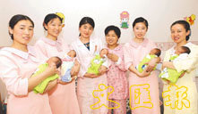 於5月29日在北京婦產醫院產下五胞胎的王鳳娟和她的五胞胎被接到北京安達瑞母嬰中心,五胞胎將得到由該中心免費提供的新生兒全套喂養和護理,及一個階段的新生兒初期智力開發和教育。 明年「猴年」各醫院產房相信也必定熱鬧非凡。 (資料圖片)