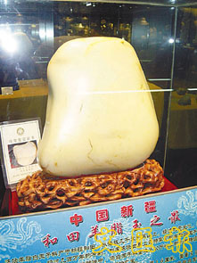 據古玩城新疆和田白玉精品店經理田明華介紹,在現代和田白玉等級劃分標準中,將白玉籽料重達6公斤以上的列為特級品,若為羊脂白玉籽料,就貴為極品。