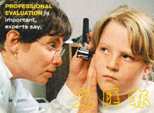 專家為病人檢查,以確定佩戴何種助聽器。