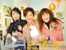 陳彥行、馬海倫和苑瓊丹義賣花生。