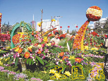 【本報駐雲南記者彭婷婷昆明30日電】今天早上,來自昆明300多家單位製造的400多輛花車首次在春城街頭亮相,造型新穎,藝術形式各異的手推車花車將春城的街頭裝點得流光溢彩,單體花車異彩紛呈,組合車隊氣勢恢弘,眾多遊客紛紛前來觀看留影。