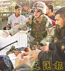 【路透社巴格達30日電】巴格達鬧市購物區周二發生炸彈爆炸,1名伊拉克平民死亡,另有數人受傷。爆炸在美軍將9名涉嫌襲擊佔領軍的游擊隊分子拘捕後發生。這是巴格達中部卡拉達區3日內第2次爆炸,周日已有兩名伊拉克兒童和1名美兵遭路邊炸彈炸死。目擊者稱炸彈顯然被置於1條主大街的混凝土隔牆,目標應是兩輛路過的美軍軍車。兩輛車都無受損,但1名伊拉克人當場喪命。
