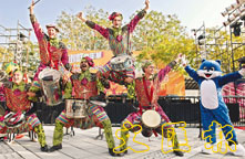 康文署昨日在沙田公園舉行除夕倒數嘉年華預演。圖為來自澳洲的Batacuda五名成員表演玩火及敲擊樂。 (李志樑 攝)