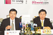 陶汝鴻(左)表示,亞太區商廈最具競爭力。旁為阮仲賢。 (周穎 攝)