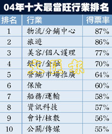 ¡@¡i¥»³ø°T¡j(°OªÌ ¿c¿P®Z)¤@¶µ½Õ¬dÅã¥Ü¡A2004¦~10¤j·í©ô¦æ·~¥Hª«¬yºK«a¡A®È¹C©~¦¸¡A¬ü®e¦ì¦C²Ä3¦W¡A¦Ó©Ò¦³¥«¥Á³Ì¬Ý¦n¡B³Ì·Q¡u¸õ¼Ñ¡v¤§¦æ·~¡A²ö¤£»PCEPA¤ÎÓ¤H¹C¦³±K¤ÁÃö«Yªº®È¹C·~¡C