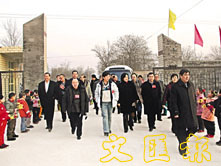 圖為港澳政協委員到邢台臨城鴨鴿營參觀考察捐建的小學,受到師生的熱烈歡迎。 (梁利崢 攝)
