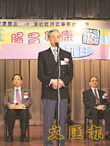 他指出,都市人進餐每天少蔬菜、少生果,加上缺乏運動,就大大增加患上大腸癌的機會。另一委員楊日華醫生就解構「消化性潰瘍」,並指出超過一半的成年人帶有幽門螺旋桿菌,而此病菌已被證實與消化性潰瘍有密切關係,情況令人關注。